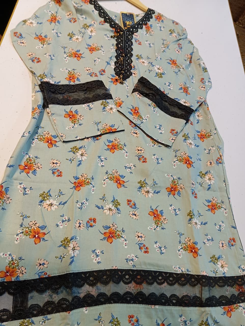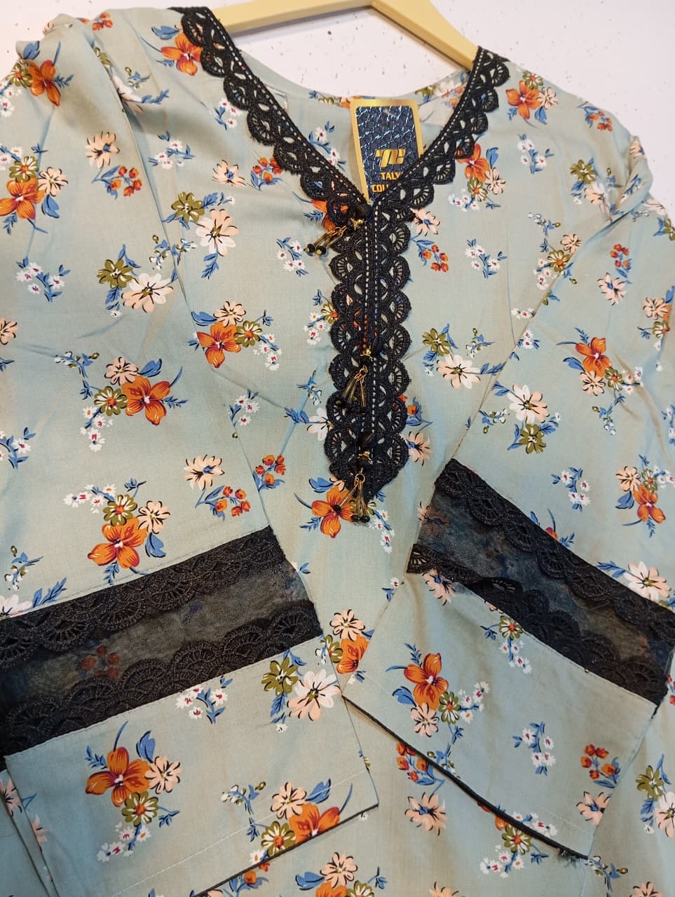 The kurti is richly embellished with black detailing: